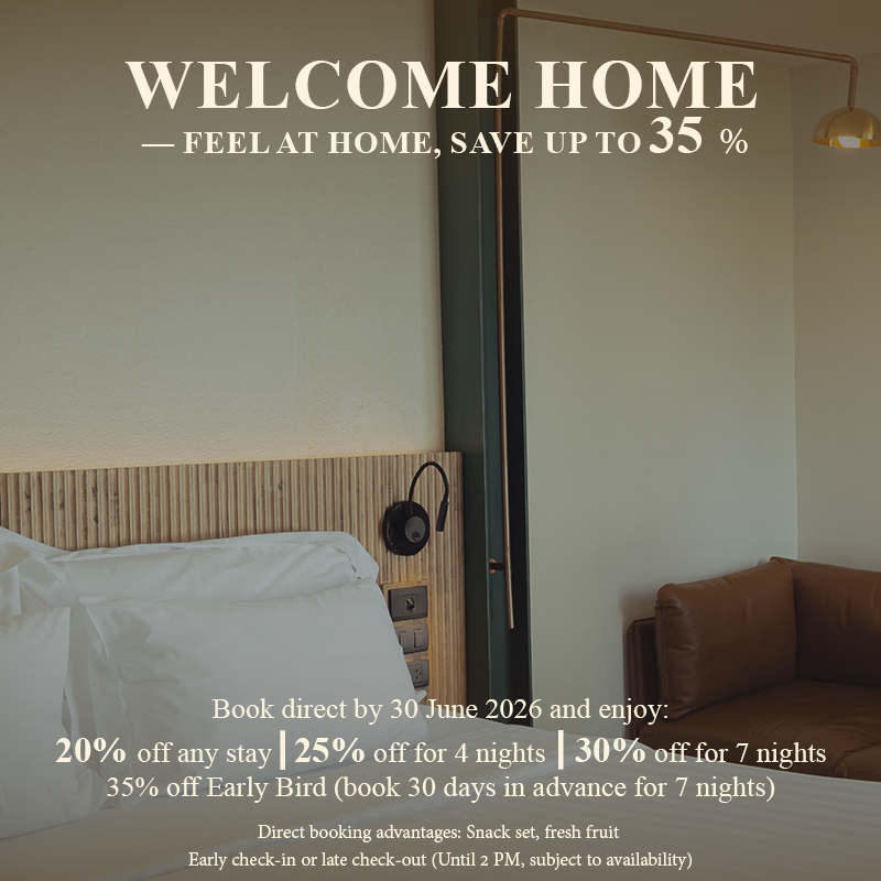 After checking in at our living room-cum-cafe, unwind in your own space designed with attentiveness for your utmost comfort.